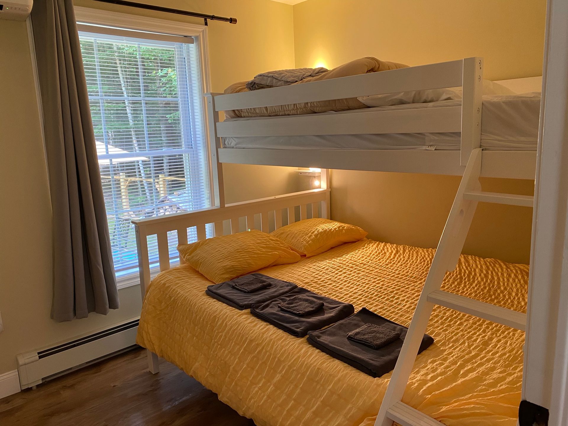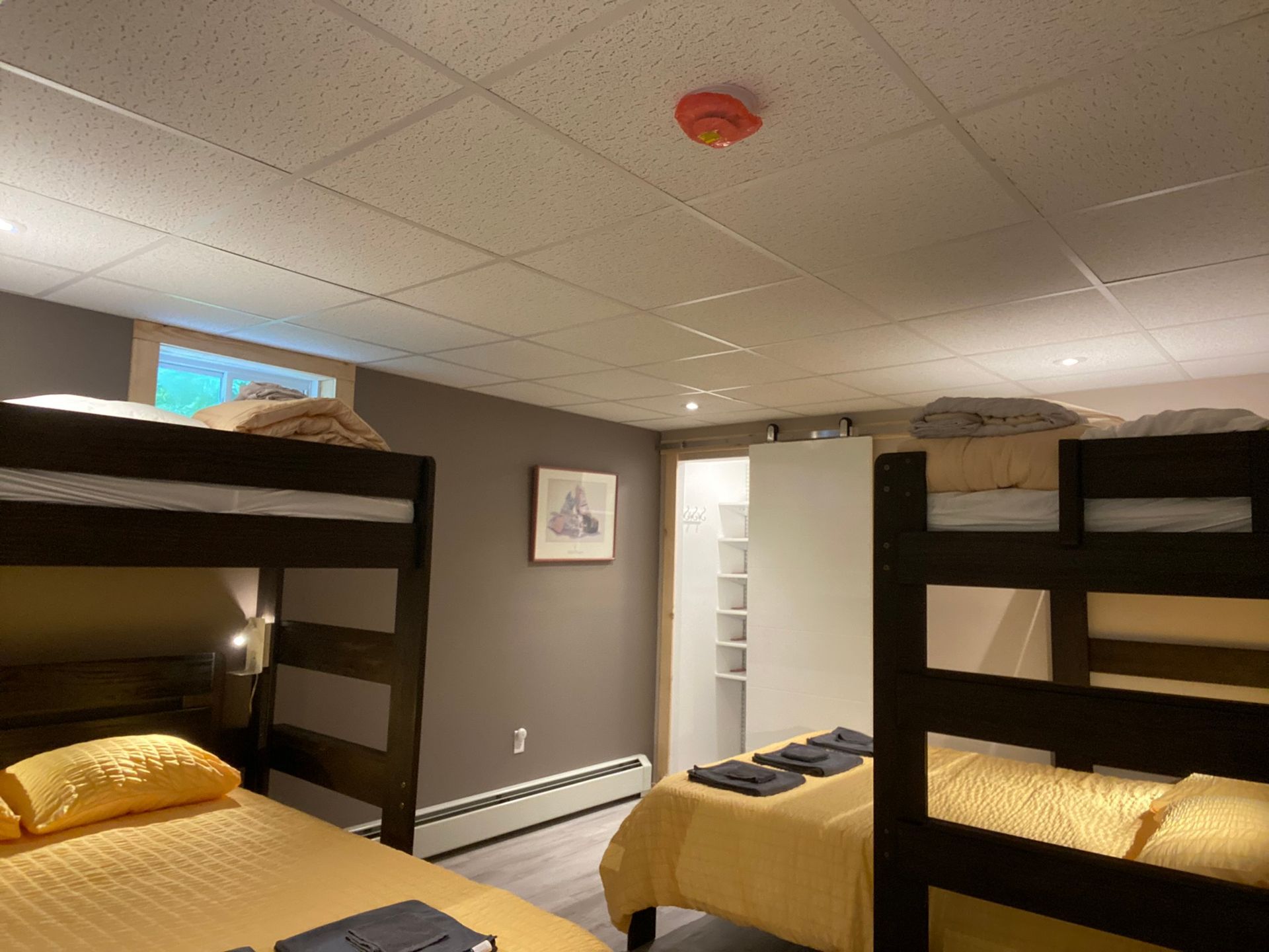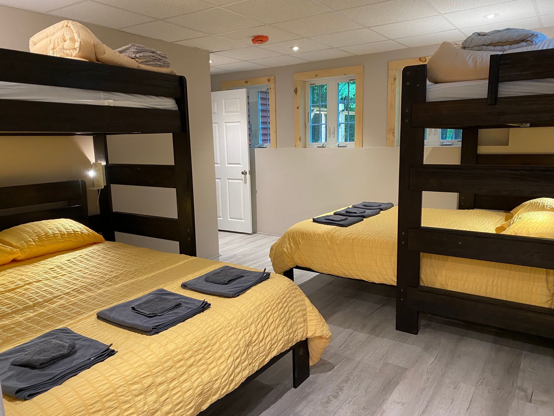 The house has 4 bedrooms, 1 King bedroom with crib, 1 Queen bedroom, 1 Twin XL over Queen bedroom and 1 bedroom with 2Twins over queens.