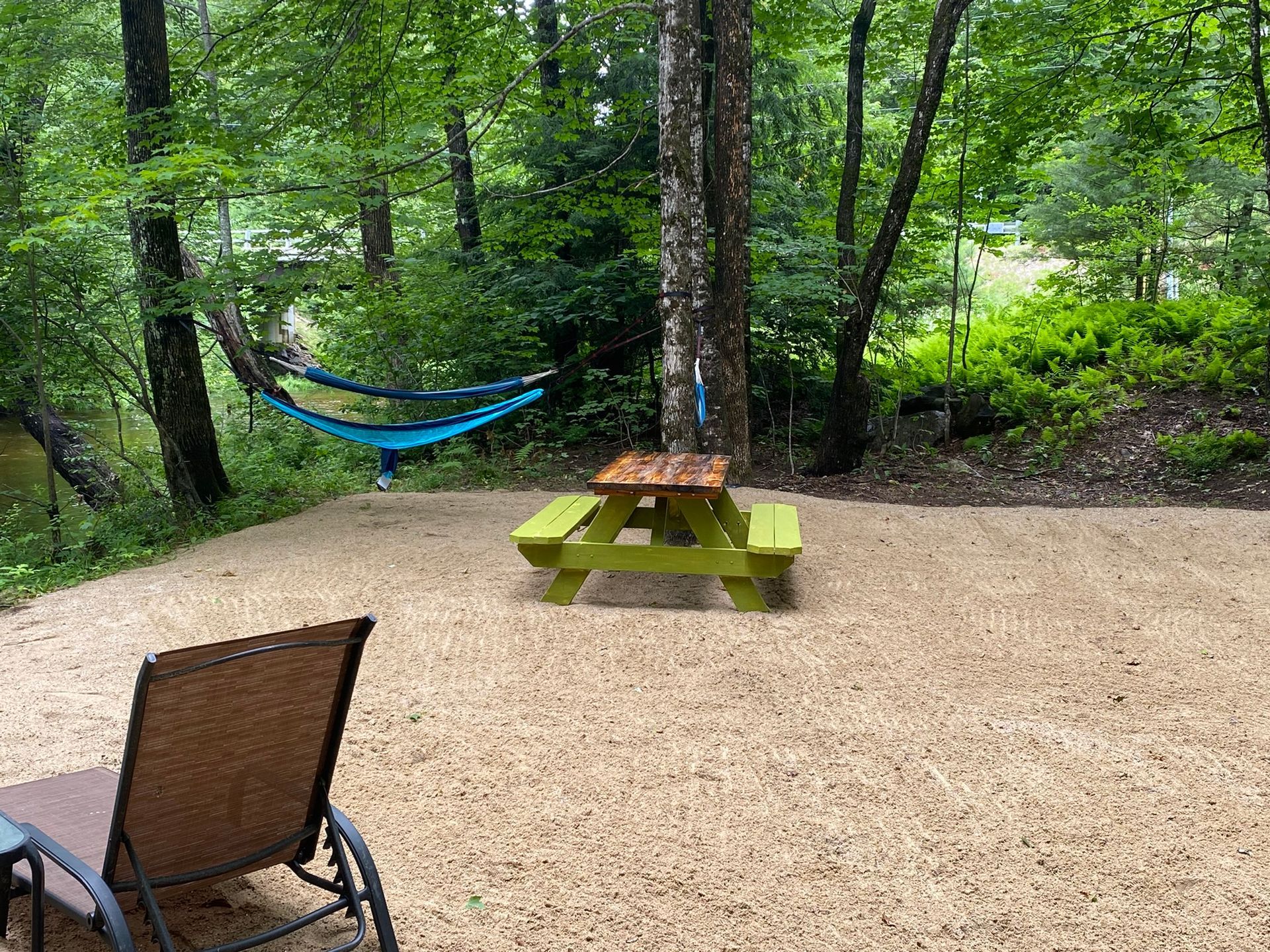 Enjoy our fully fenced in yard with an outdoor gas grill and a large patio table to eat outside on nice days with family or friends and a big picnic table to eat by the river. In the evening relax around the outdoor firepit with plenty of seats for everyone to enjoy the fire or make some smores.